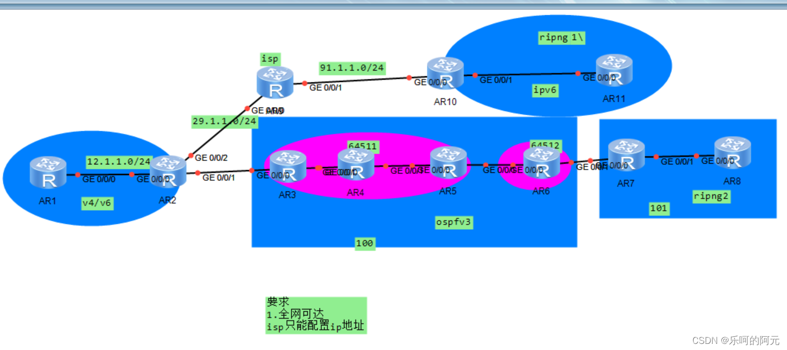 [isp-GigabitEthernet0/0/0]ip a 12.0.0.2 24