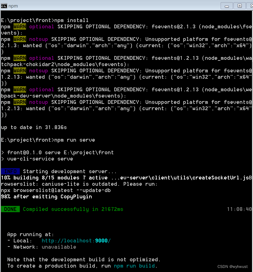 - 下载前端代码,使用命令npm install安装依赖,若中途报错,可能是版本冲突问题
