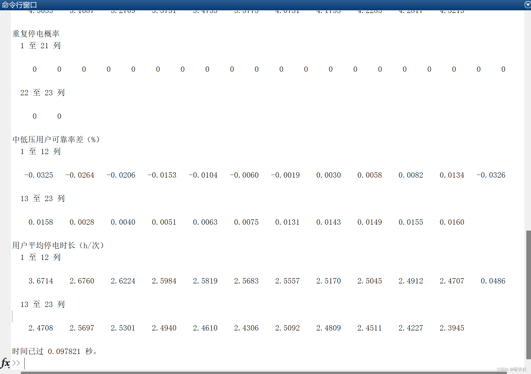 disp('用户平均停电时长(h/次)')