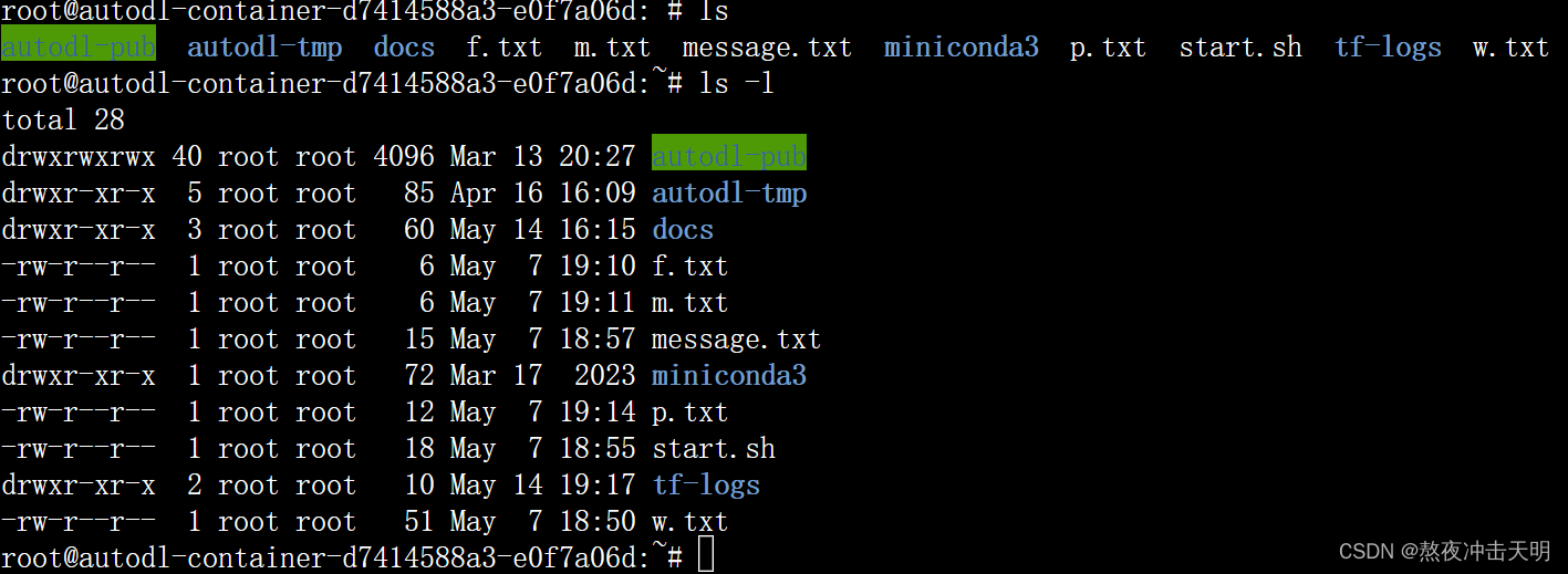 查询文件目录ls 查询文件目录 ls 查询当前路径下的文件或文件ls -a 隐藏文件也能查到 隐藏文件(以点开头) 例如 .abcls -l 列表的形式展示ls -a -l 以列表的形式展示,且能查询出隐藏文件 ls -al ls -lals -al /root 查询指定的目录(/root)下的所有文件 包含隐藏文件