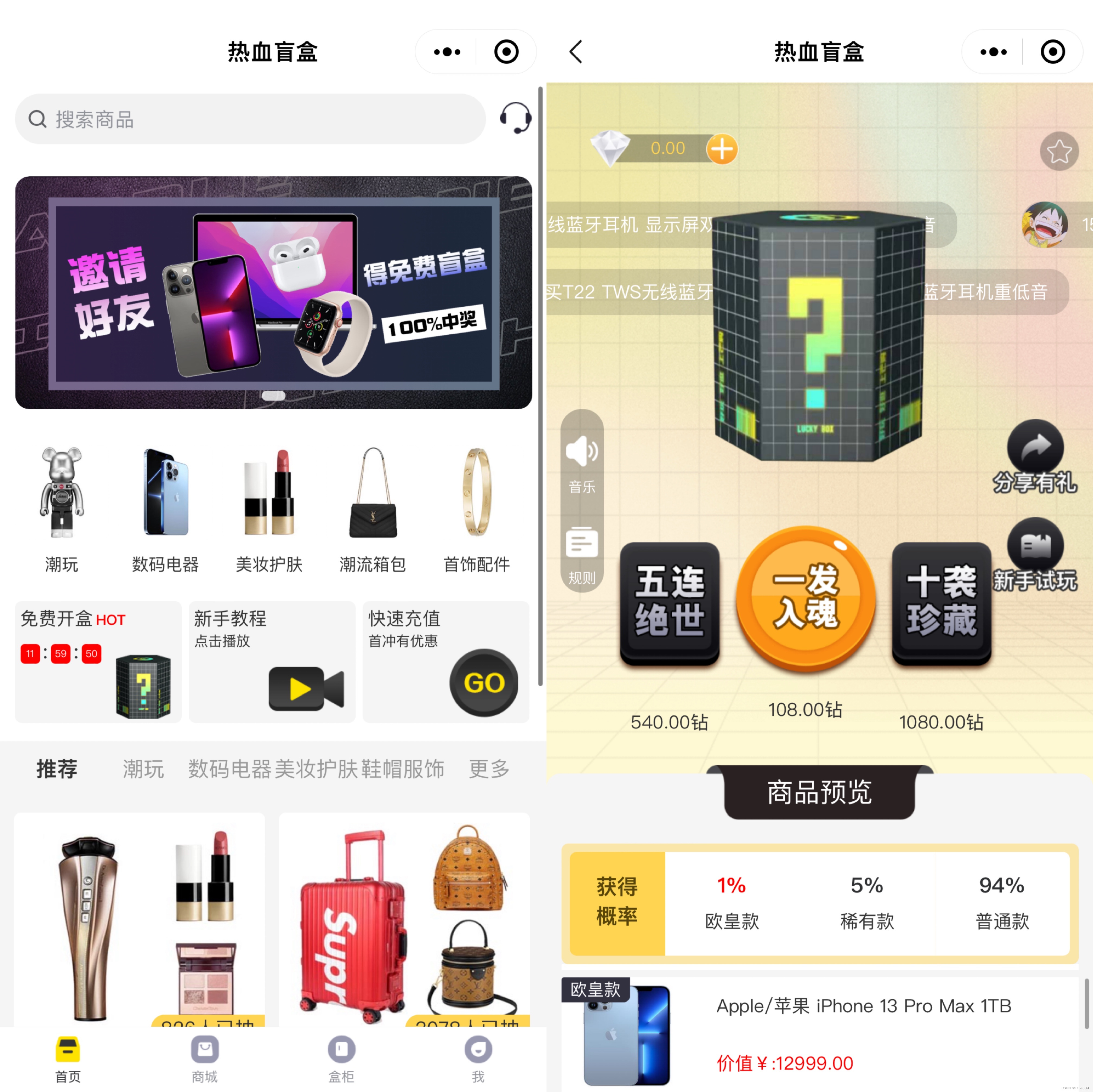 近期总有粉丝问我,如何开发盲盒app,1.相对于线下盲盒,线上功能玩法更加丰富,同时拥有分享系统,分享奖励机制,用户介绍用户可获得积分奖励,推广更加简单方便,用户增长更加迅速。