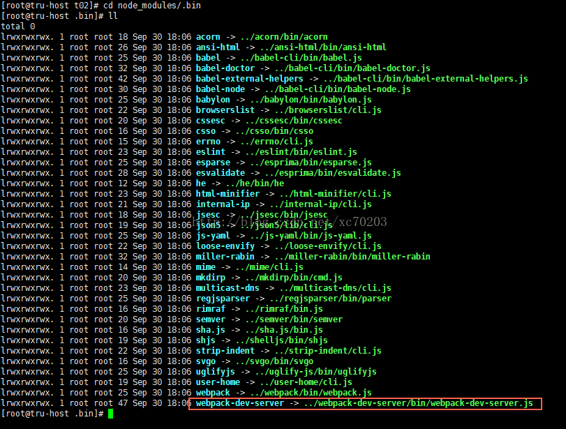 我们顺藤摸瓜,可以找到./node_modules/.bin目录下,可以尝试直接执行下该指令: