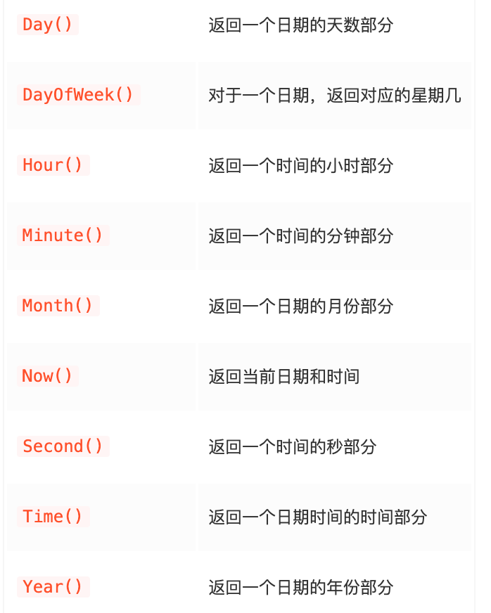列(column):表中的一个字段。所有表都是由一个或多个列组成的。