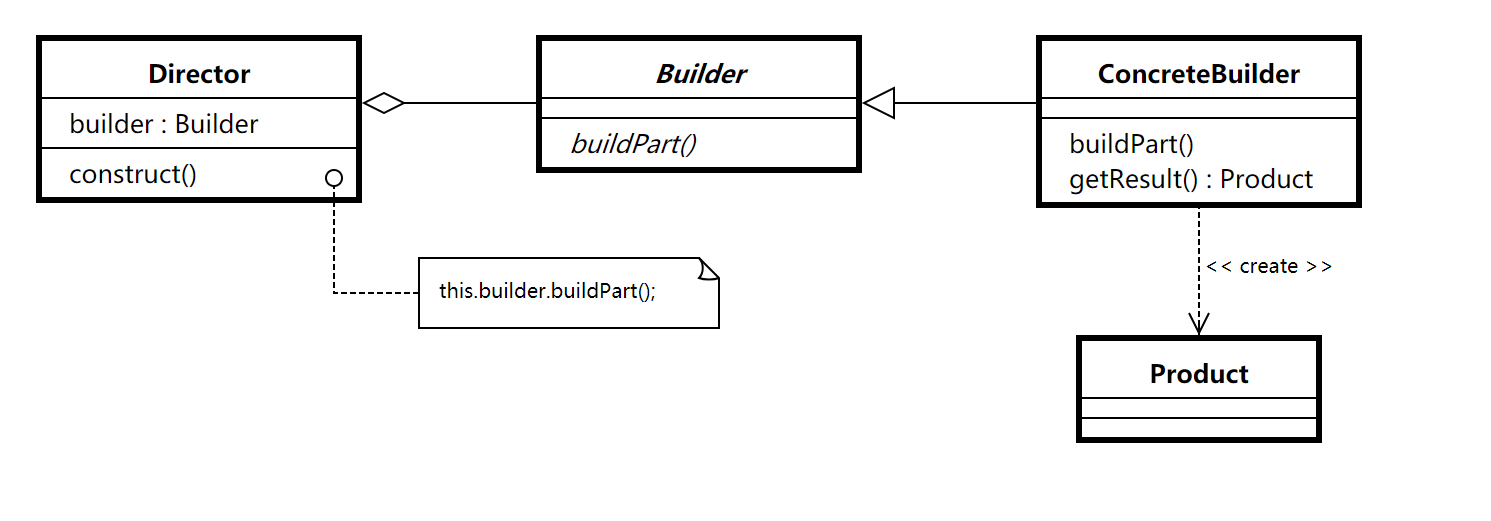 实现:定义builder抽象类,定义构建各个组件的抽象方法,后面定义一个获取结果的方法。然后定义实现类,聚合一个产品对象,分别实现所有抽象方法。最后定义指挥者类,调用建造者类的各个构建方法并获取对象。