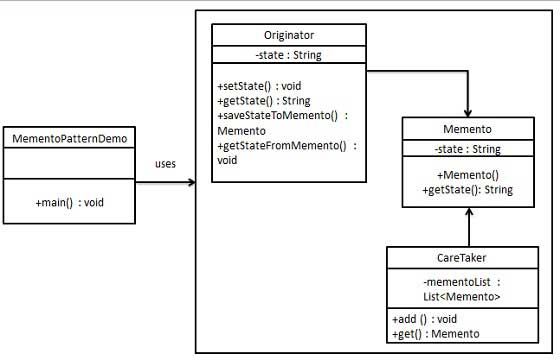 定义:在不破坏封装性的前提下,捕获一个对象的内部状态,并在对象之外保存这个状态。这样以后就可将该对象恢复到原先保存的状态。