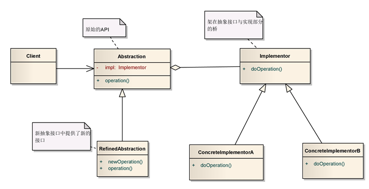 定义:将抽象部分与它的实现部分分离,使它们都可以独立地变化。