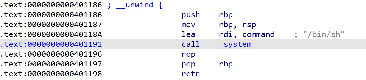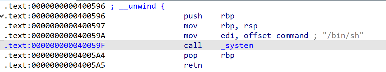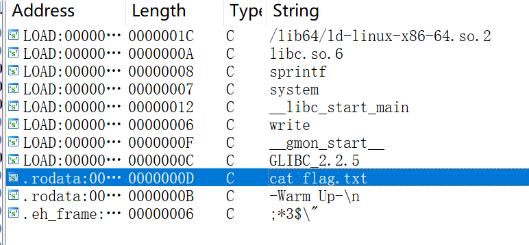 ②IDA64打开,shift+F12查看有system函数和/bin/sh