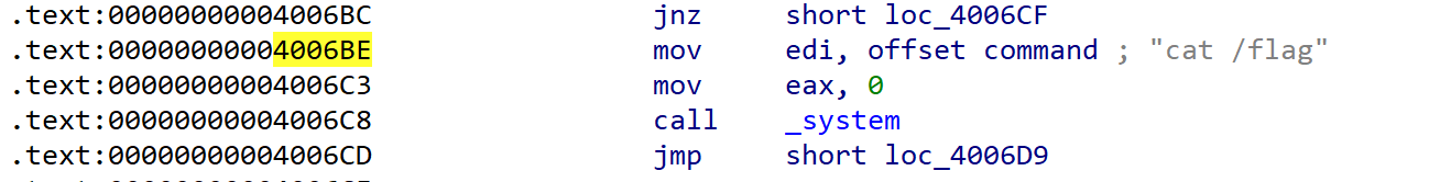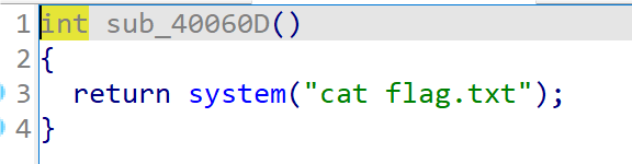 # 栈溢出之后,直接执行system("cat flag.txt")