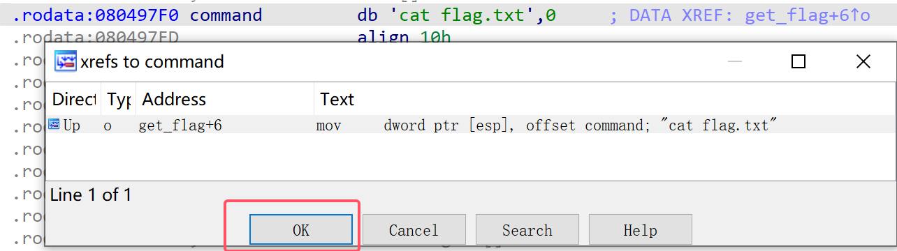 Ctrl + X,即可找到这一命令地址 0x08048F13