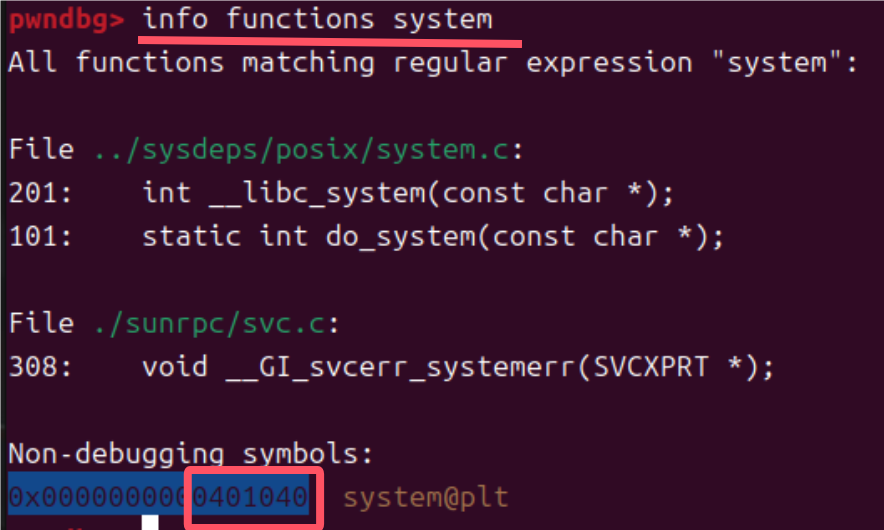 #sys_addr = 0x401040 #这是system函数plt表的位置