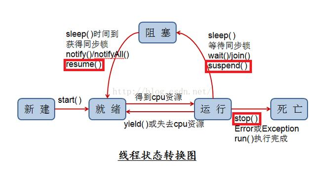 Java线程的状态转换图与相关方法,如下: