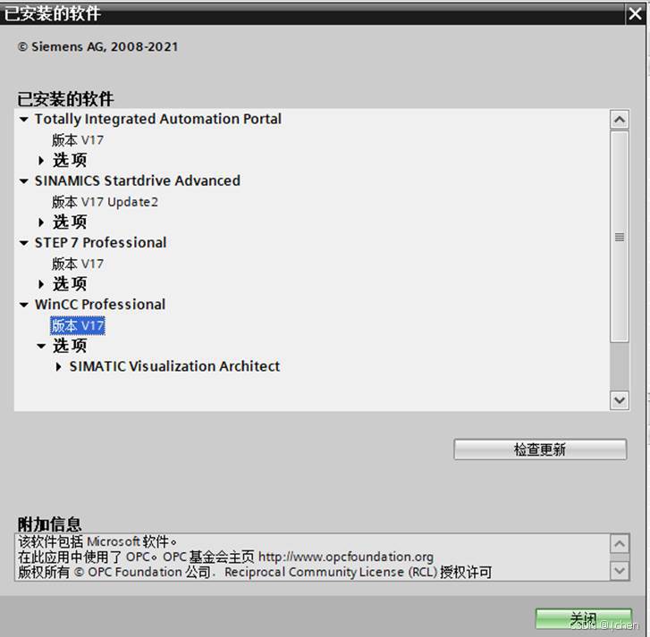 PLC软件编程版本使用博途V17版本,相关软件安装版本如下表所示: