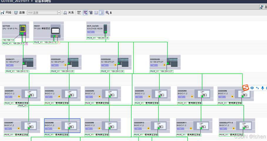 拓扑视图是网络连接的组态视图,如果组态了拓扑视图,那么实际Profinet网口接的位置必须要和拓扑视图保持一致,否则将触发报警。拓扑视图网口组态需要与IP LIST保持一致。