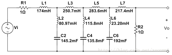 上图所示的梯形网络是一个低通类型,如果将电感换为电容,电容换成电感则变为高通。