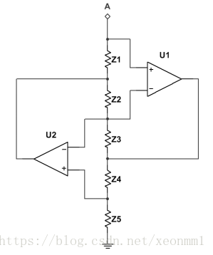 运放的正反相没要求,利用同反相电压相等和节点电流求和,从A点看进去的阻抗可以等效为:
