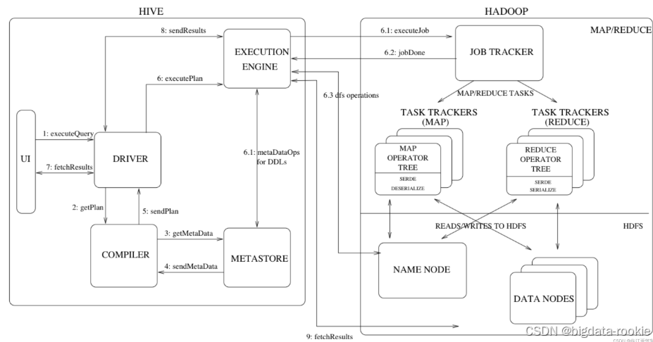 - 返回元数据:Meta store 向编译器返回对应元数据;