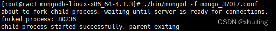 2)指定配置文件的方式启动:./bin/mongod -f mongo_37017.conf