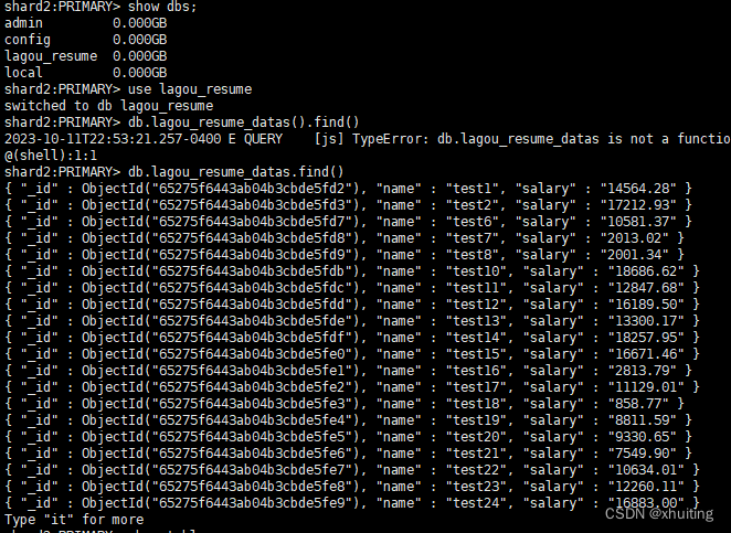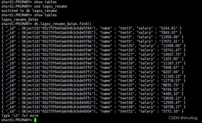 ... db.lagou_resume_datas.insert({"name":"test"+i,