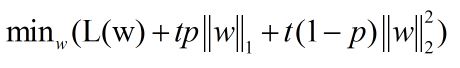 上式中,t为正则项与L(w)之间的trade-off系数,和之前的描述一致,p是elastic net里独有的参数,它是L1和L2之间的一个trade-off,如果p为0,那么上式退化为L2正则化,如果p为1,那么上式退化为L1正则化。所以当p取值为0到1时(不包含端点),上式兼顾了L1和L2的特点。又由于L1为1范式,L2为2范式,那么elastic net就介于1范式和2范式之间。