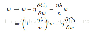在不使用L2正则化时,求导结果中w前系数为1,现在w前面系数为 1-ηλ/n ,因为η、λ、n都是正的,所以 1-ηλ/n小于1,它的效果是减小w,这也就是权重衰减(weight decay)的由来。当然考虑到后面的导数项,w最终的值可能增大也可能减小。