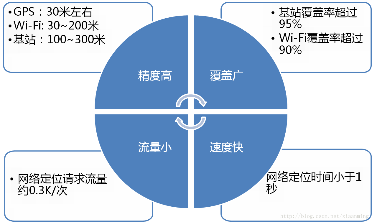 定位我们使用的是百度 Android 定位SDKv4.0,我们先了解下定位原理和定位精度