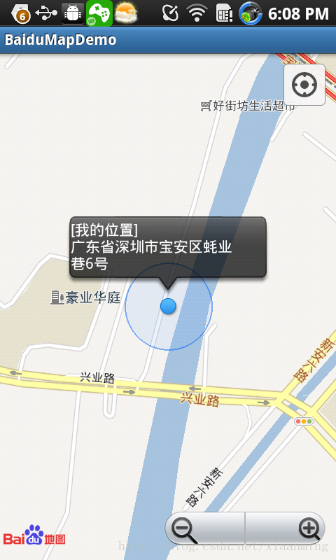 - LocationOverlay MyLocationOverlay的子类,重写里面的dispatchTap()方法,显示弹出窗口图层PopupOverlay,调用mMapView.getOverlays().add(myLocationOverlay)就将我的位置图层添加到地图里面