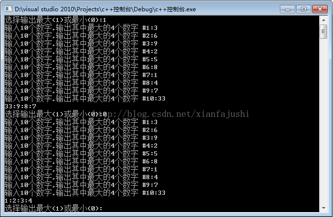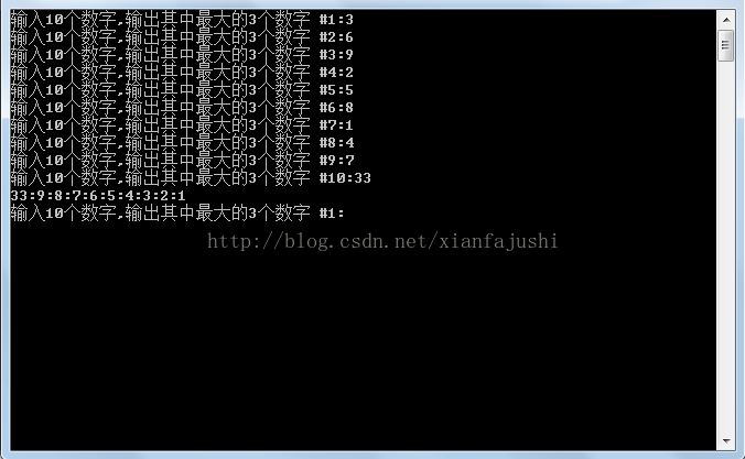 std::cout << "输入10个数字,输出其中最大的3个数字 #" << 序 + 1 << ":";