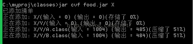 例如我现在C:\myproj\classes\X\Y下有A.class和B.class,我要打包(内部包含子目录信息)成food.jar