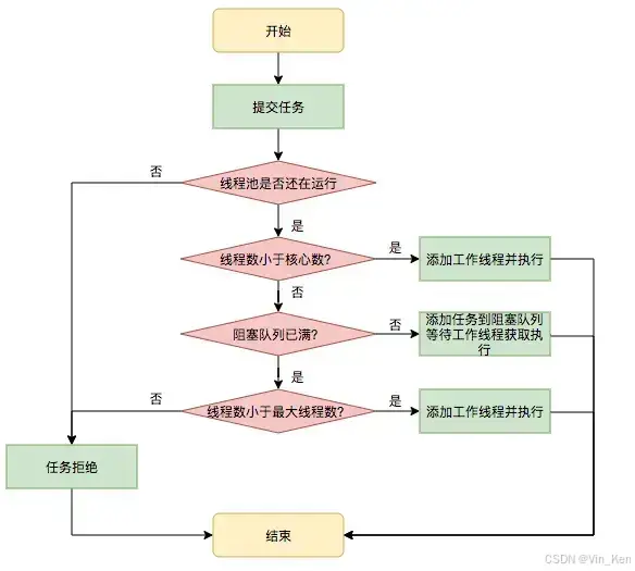 RejectedExecutionException,直接拒绝处理新任务。 - DiscardPolicy,默默地丢弃被拒绝的任务,不抛出异常也不通知调用者。
