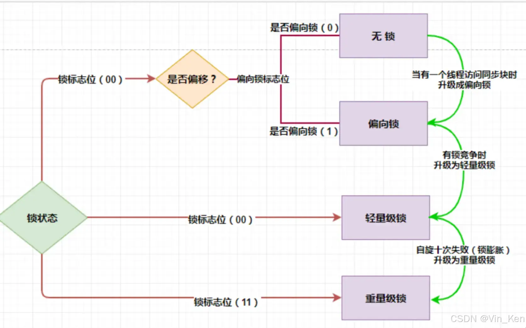 执行monitorenter指令时会尝试获取对象锁,如果对象没有被锁定或者已经获得了锁,锁的计数器+1。此时其他竞争锁的线程则会进入等待队列中。执行monitorexit指令时则会把计数器-1,当计数器值为0时,则锁释放,处于等待队列中的线程再继续竞争锁。