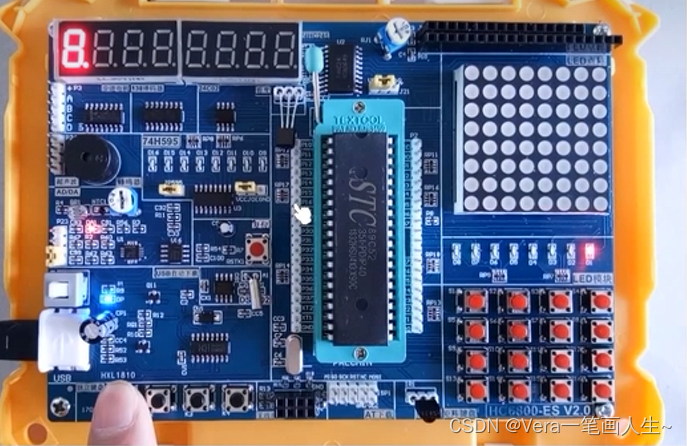 重启板子后,我们没有看到灯亮,我们就按一下K1这个键,D1号LED就亮了