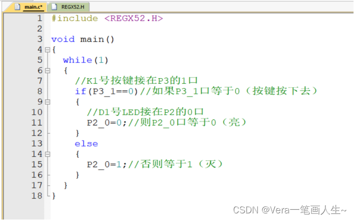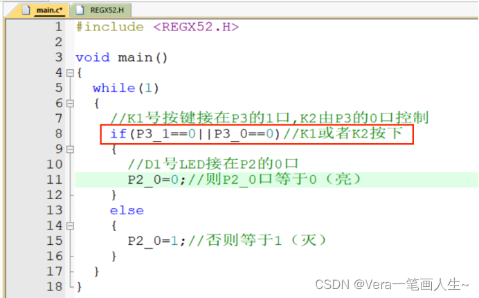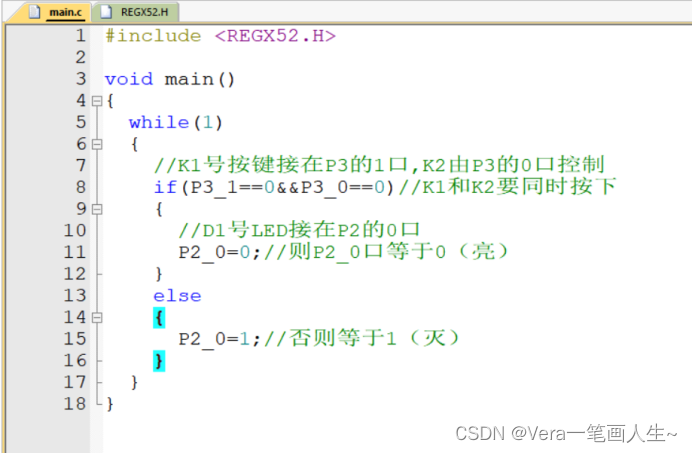 我们要实现的效果是第一个按键控制就是按下的时候,执行P2_0=0;