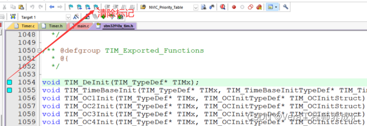 解决方案也非常简单,就是在TIM_TimeBaseInit后面,和开启中断的前面,在这里调用一下这个函数,这样再手动把更新中断,标志位清除一下,就能避免刚初始化完就进中断的问题了。