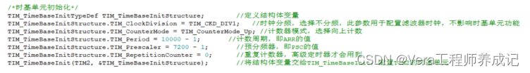 TIM_TimeBaseStructInit这个函数可以把结构体变量赋一个默认值。这个之前我们也都见过,没啥说的,我们也做个标记。