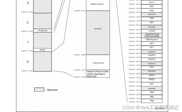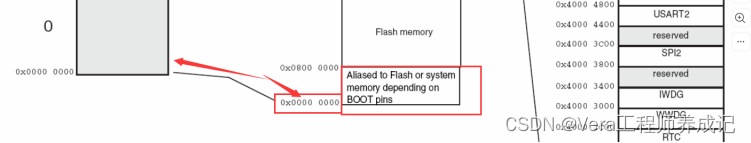 0地址实际上也是没有存储器的,它这里写的是别名到flash或者系统存储器取决于boot引脚。