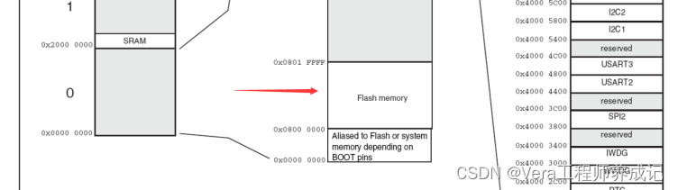 怎么选择由BOOT0和BOOT1两个引脚来决定,这就是0地址里的别名区。