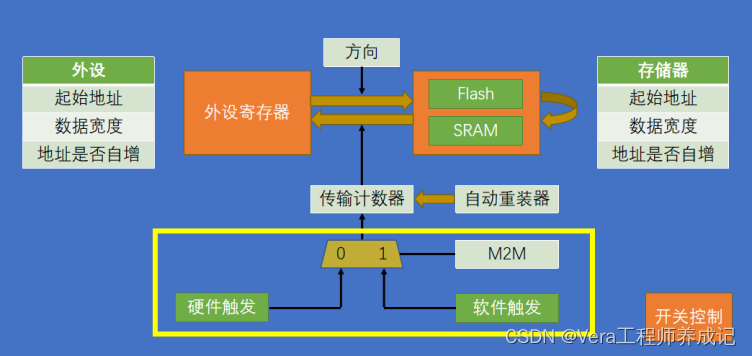 另外还有一种转运方式,就是存储器到存储器,比如flash到SRAM或者SRAM到SRAM这两种方式。