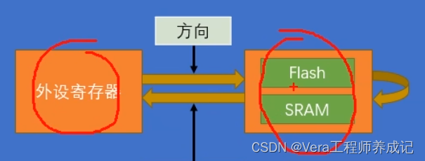 只要在外设起始地址里写flash或者SRAM的地址,那它就会去flash或SRAM找数据。