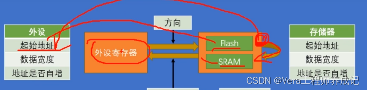 地址是否自增,从这个图里显然是外设地址不自增,存储器地址自增。