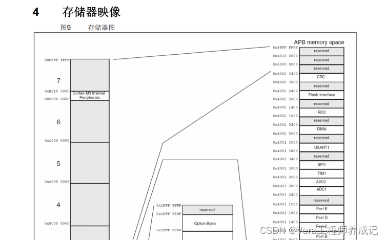 在STM32中所有的存储器都被安排到了0~0xFFFF FFFF这个地址范围内
