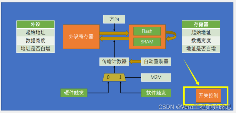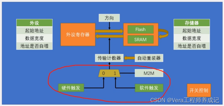 这张图表示的就是结构图中这部分结构,DMA触发的部分: