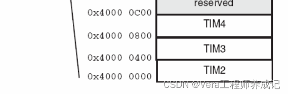 每个外设又有它们自己的起始地址,比如TIM2的地址是0x4000 0000。