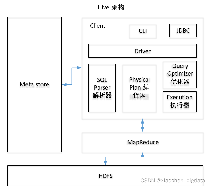 目录一.基础概念1.概述2.组成架构3.特点4.hive和传统数据库区别比如mysql二.基础操作常用命令1.进入hive数据库2.查看某个数据库3.进入某个数据库4.查看所有表5.显示表结构6.查询表数据7.显示表名的分区8,创建数据库9.删除数据库10.创建数据表11.加载数据列表12.重命名表13.删除表14.插入表数据15.表结构修改16.分桶表17.创建一个视图数据仓库(Data Warehouse)工具基于Hadoop的将 结构化的数据文件 映射成一张表提供了类SQL的HQL的查询功能