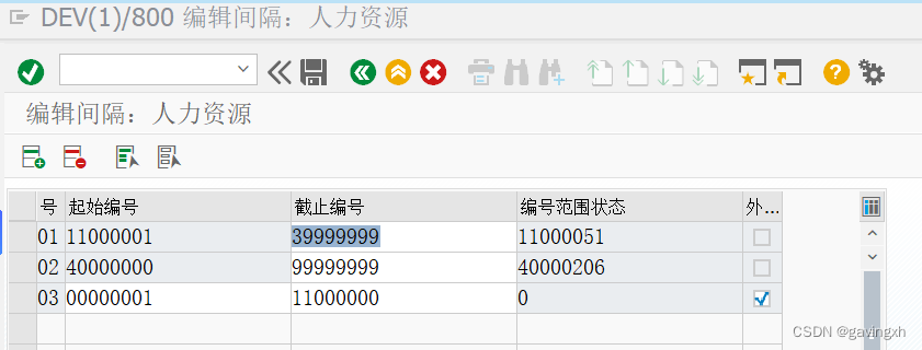 SPRO→人事管理→人事管理→基本设置→维护职员的代码的数值范围间隔