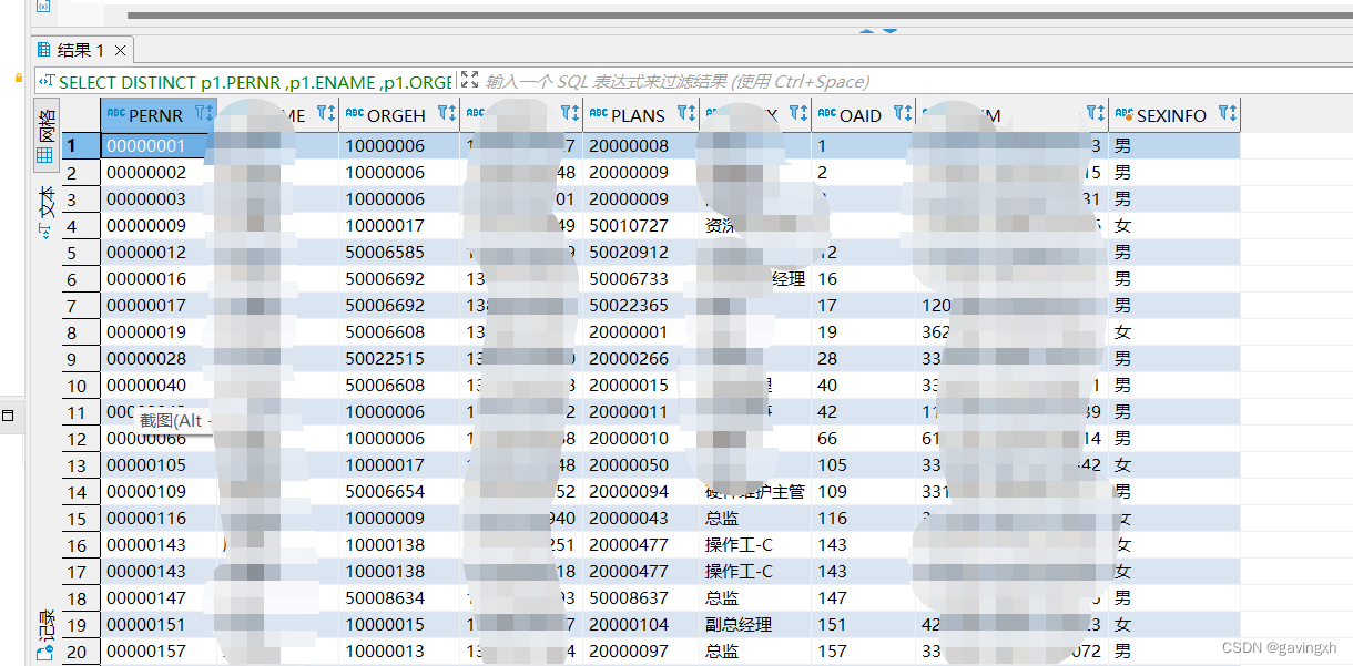 SELECT DISTINCT p1.PERNR ,p1.ENAME ,p1.ORGEH,p2.USRID AS telno,p1.PLANS,t1.PLSTX,po.USRID AS OAID ,p3.ICNUM ,CASE WHEN p4.GESCH = '1' THEN '男' ELSE '女' END AS sexinfo
