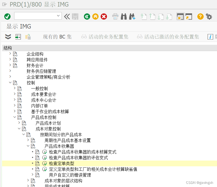 SPRO =控制-成品成本控制-成本对象控制-成品成本收集器-检查订单类型