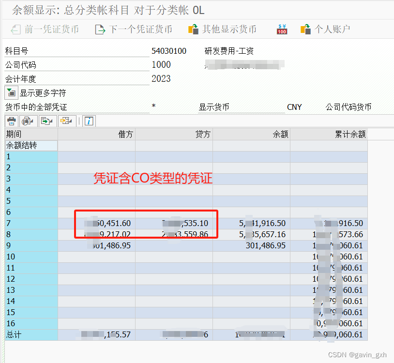 需要把CO类型的凭证去掉,经过调试发现