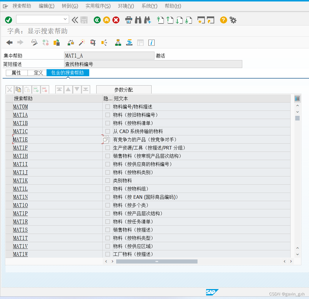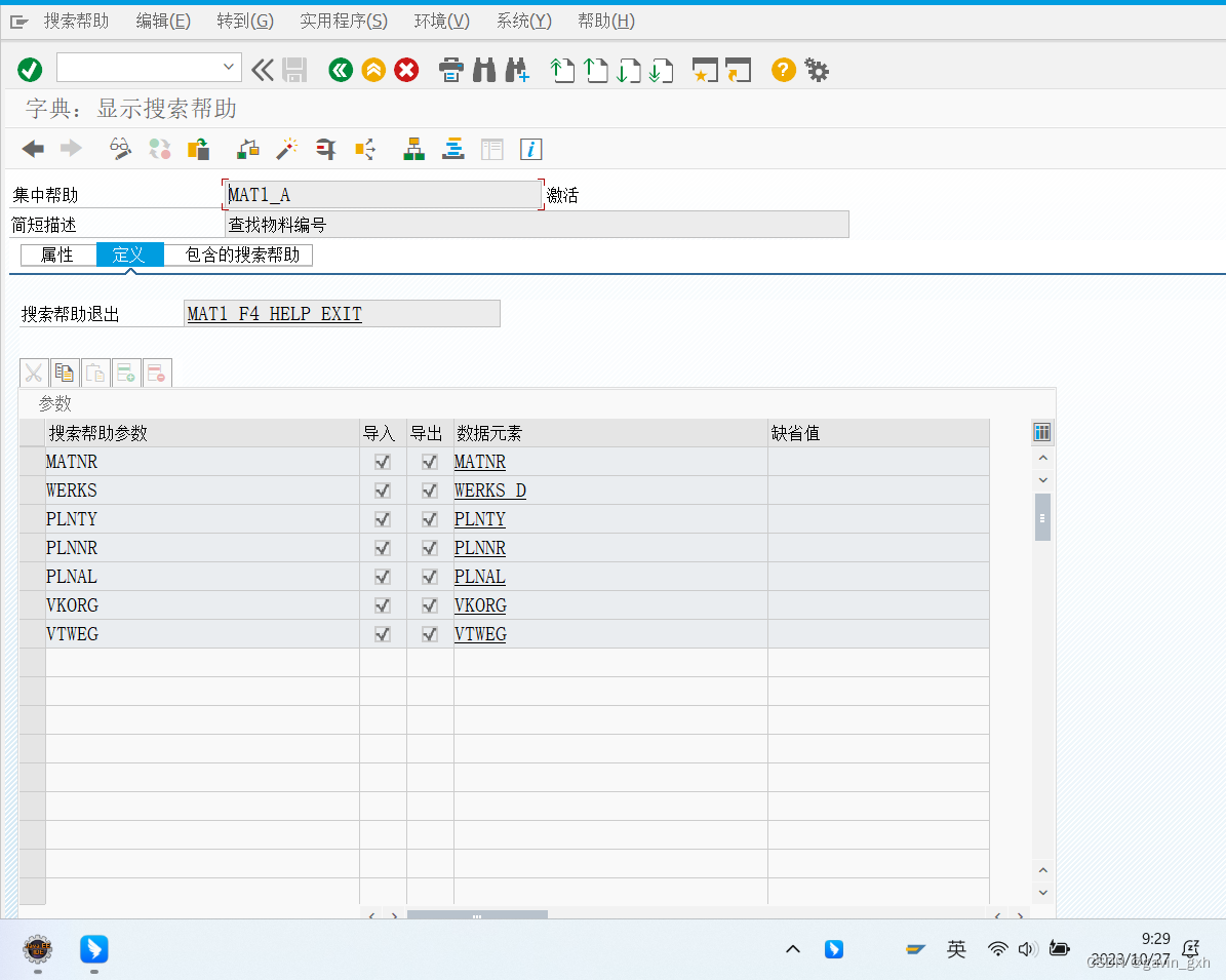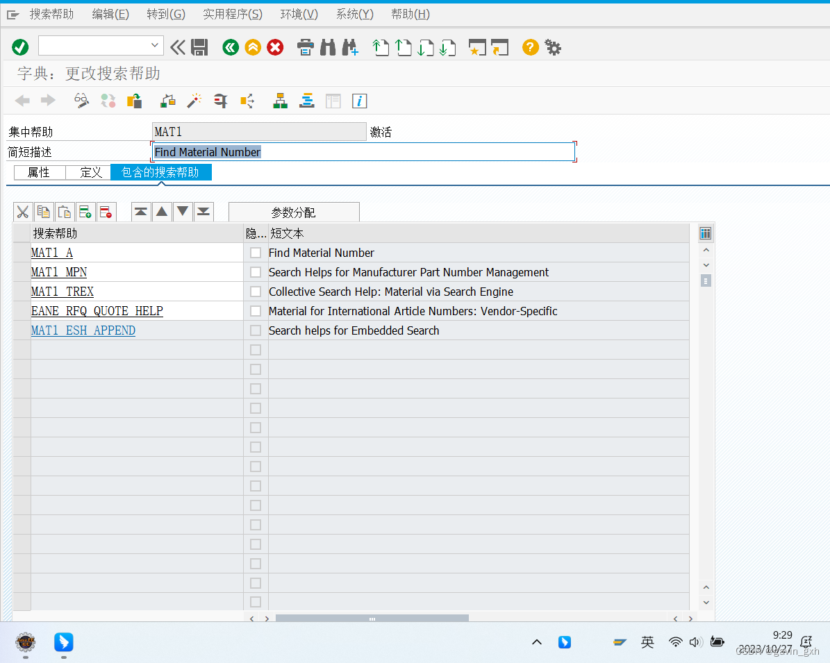 1)spro-物流-常规--物料主数据-工具-维护搜索帮助