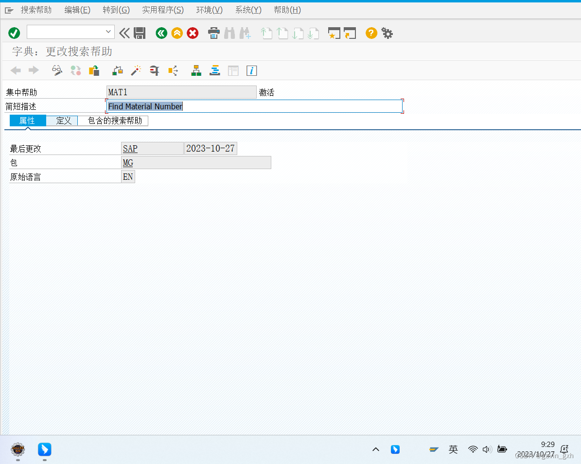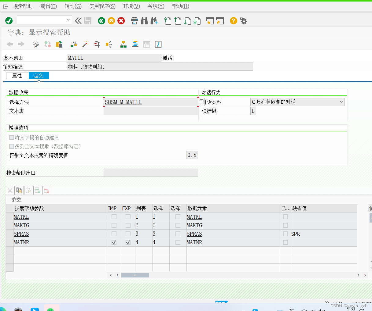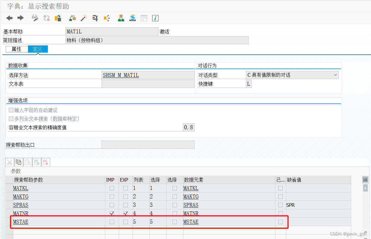 1)spro-物流-常规--物料主数据-工具-维护搜索帮助