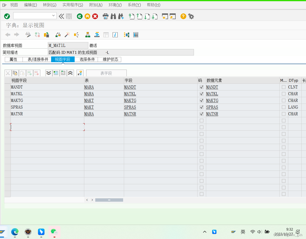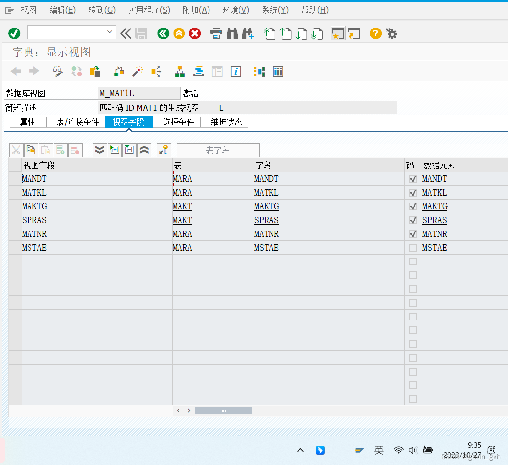 查看 M_MAT1l 是否有字段 MSTAE